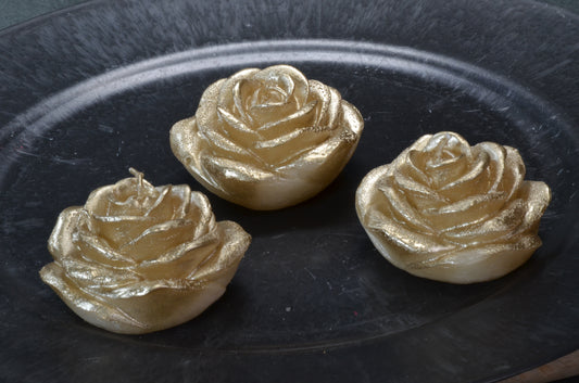 Bloemen Drijfkaars 7x7 cm, hoogte 4 cm Iin Metallic GOUD set van 3 stuks