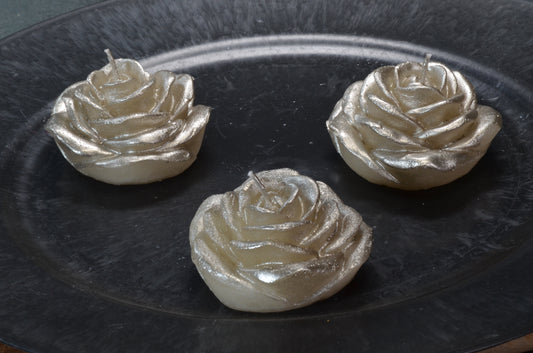Bloemen Drijfkaars 7x7 cm, hoogte 4 cm Iin Metallic ZILVER, set van 3 stuks - BEKIJK VIDEO