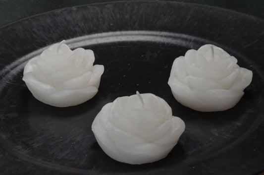 Bloemen Drijfkaars 7x7 cm, hoogte 4 cm in HAGEL WIT set van 3 stuks - BEKIJK VIDEO