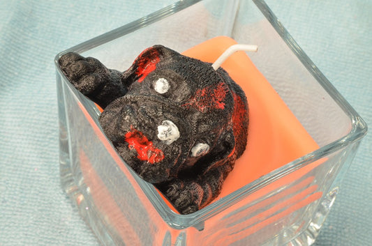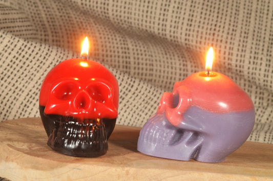Grote Schedel kaars in Rood en Zwart, hoogte: 7 cm
