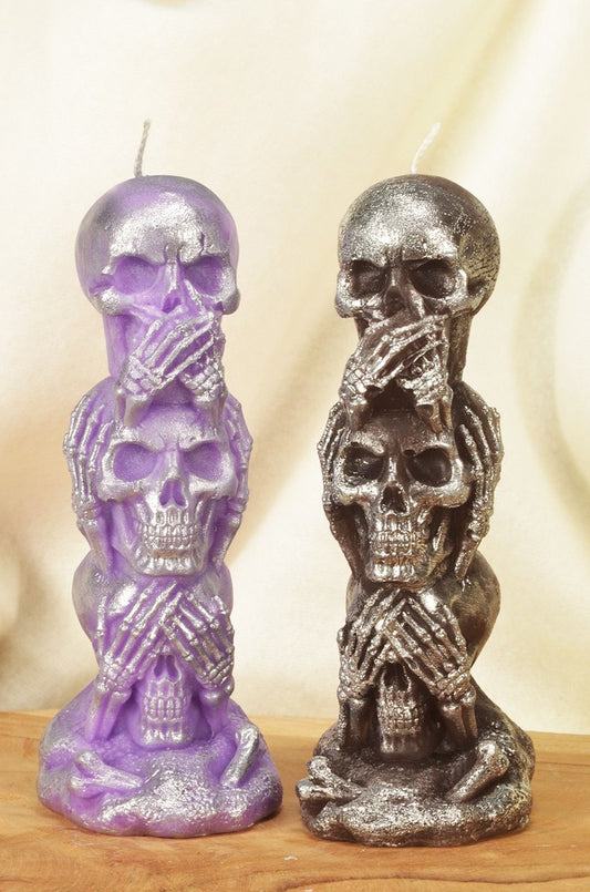 Skelet Kaars, horen Zien en Zwijgen, set van 2 stuks
