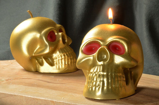 Grote Schedel kaars in GOUD, hoogte: 8 cm