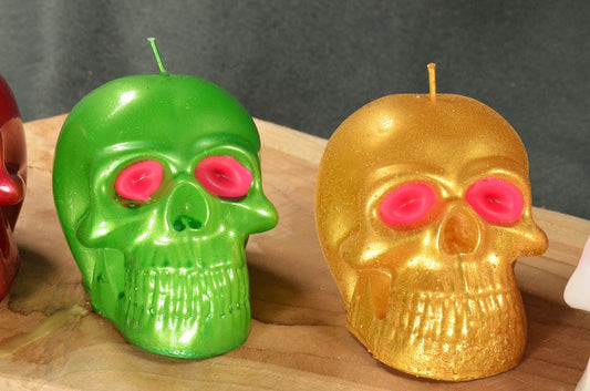 Grote Schedel kaars in GROEN METALLIC hoogte: 8 cm