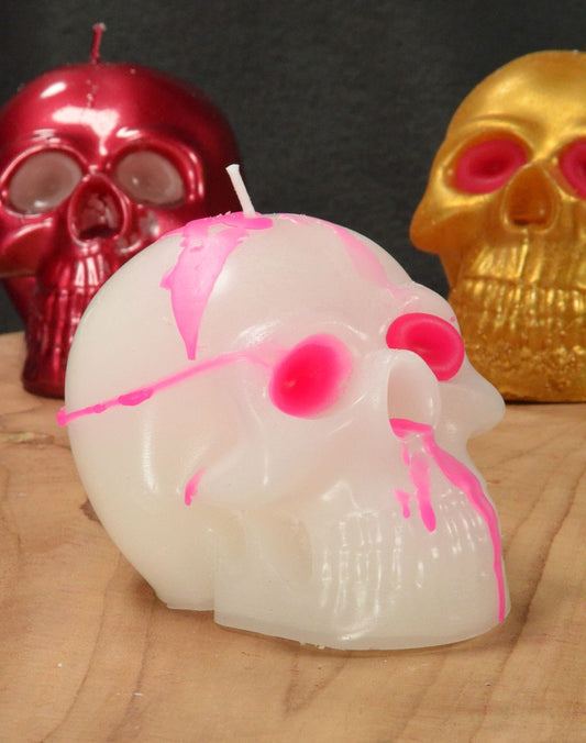 Grote Schedel kaars in WIT, hoogte: 8 cm