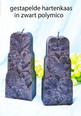Gestapelde Harten Kaars, ZWART POLYMICO, h: 18cm