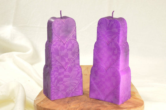 Gestapelde Harten Kaars, LILA POLIMICO, H: 18 cm