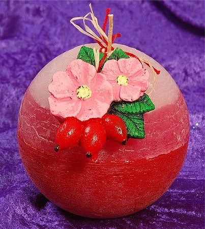============================== Megagrote Kogel geurkaars. Hij is uitgevoerd in drie kleuren rood en ruikt heerlijk naar de zoete geur van Wilde Rozen. Uiteraard komt deze kaars in een cellofaan geschenkverpakking