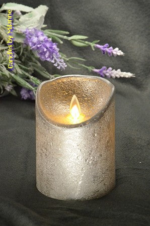 Flammenlose LED-Kerze aus Echtwachs SILBER, Höhe: 10 cm