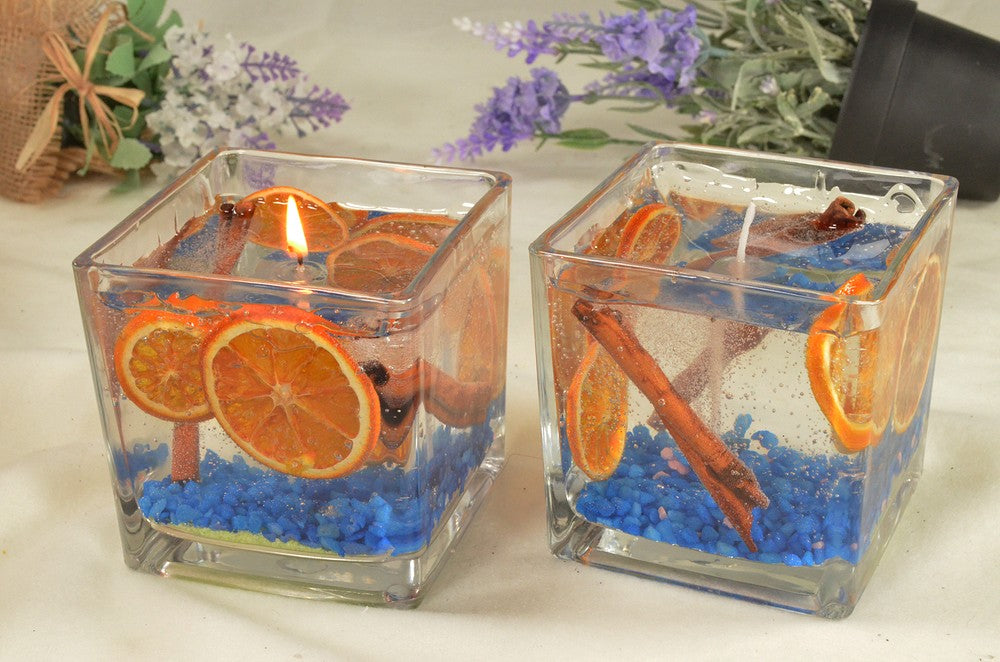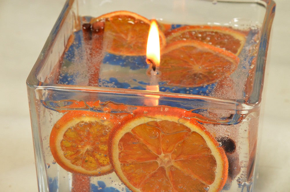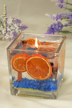 ===================================== Gelkerze mit Orangenscheiben und Zimtstangen. Gelwachs ist ein 100 % transparentes Kerzenwachs. Es ist fest und kann daher nicht auslaufen. Diese Kerze wird selbstverständlich in einer Geschenkbox geliefert.